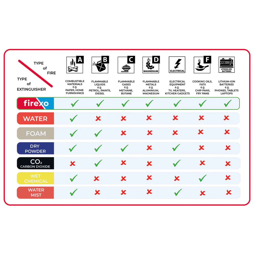 ✔️ Covers all fire types: A, B, C, D, E (electrical), F & lithium-ion